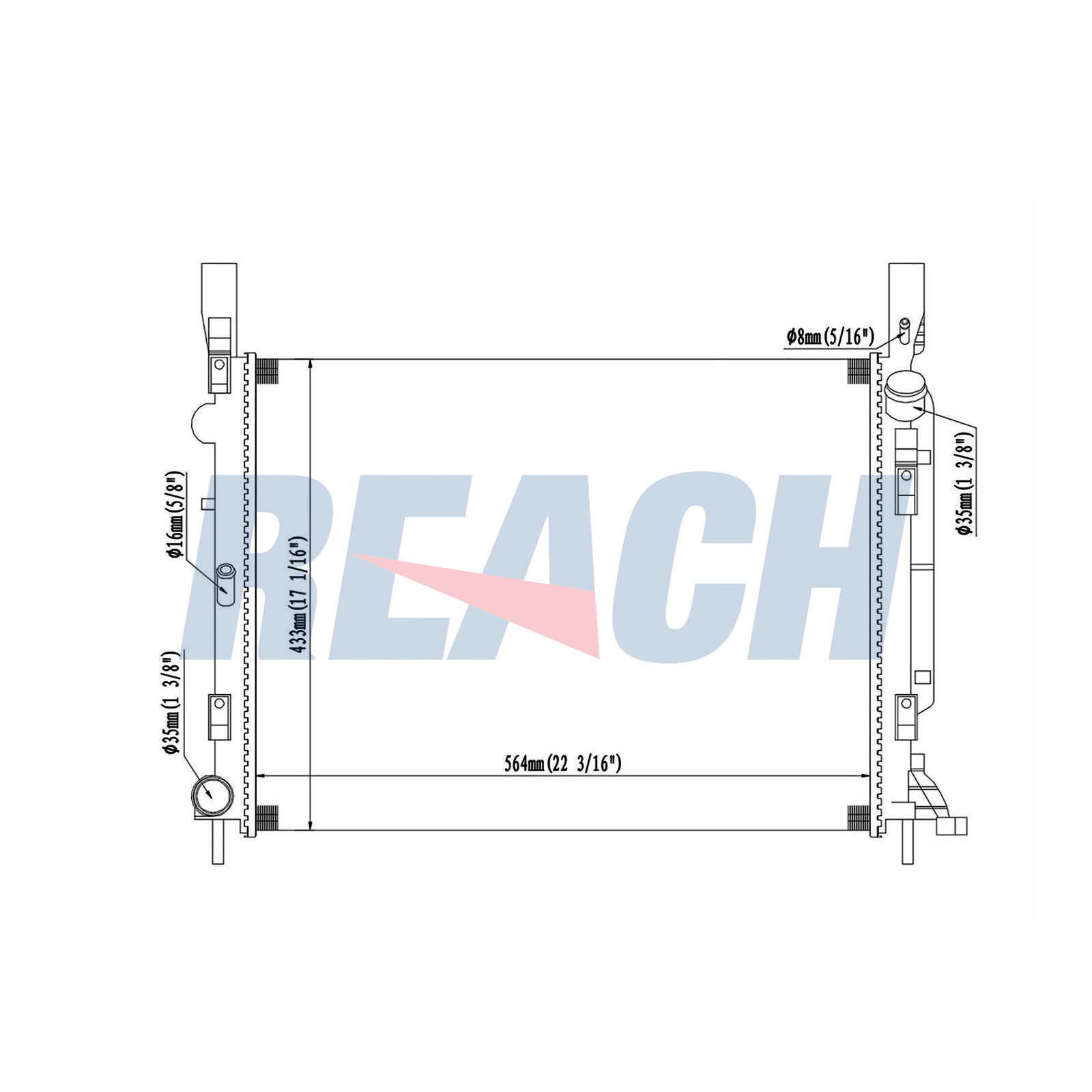 дълбочина на мрежа: 23mmдължина на мрежа: 564mmизпълнение на охладител: механично съединени охлаждащи ламелиматериал на ламелите на радиатора: алуминийматериал на резервоар (охладител): пластмасаширина на мрежа: 433mm