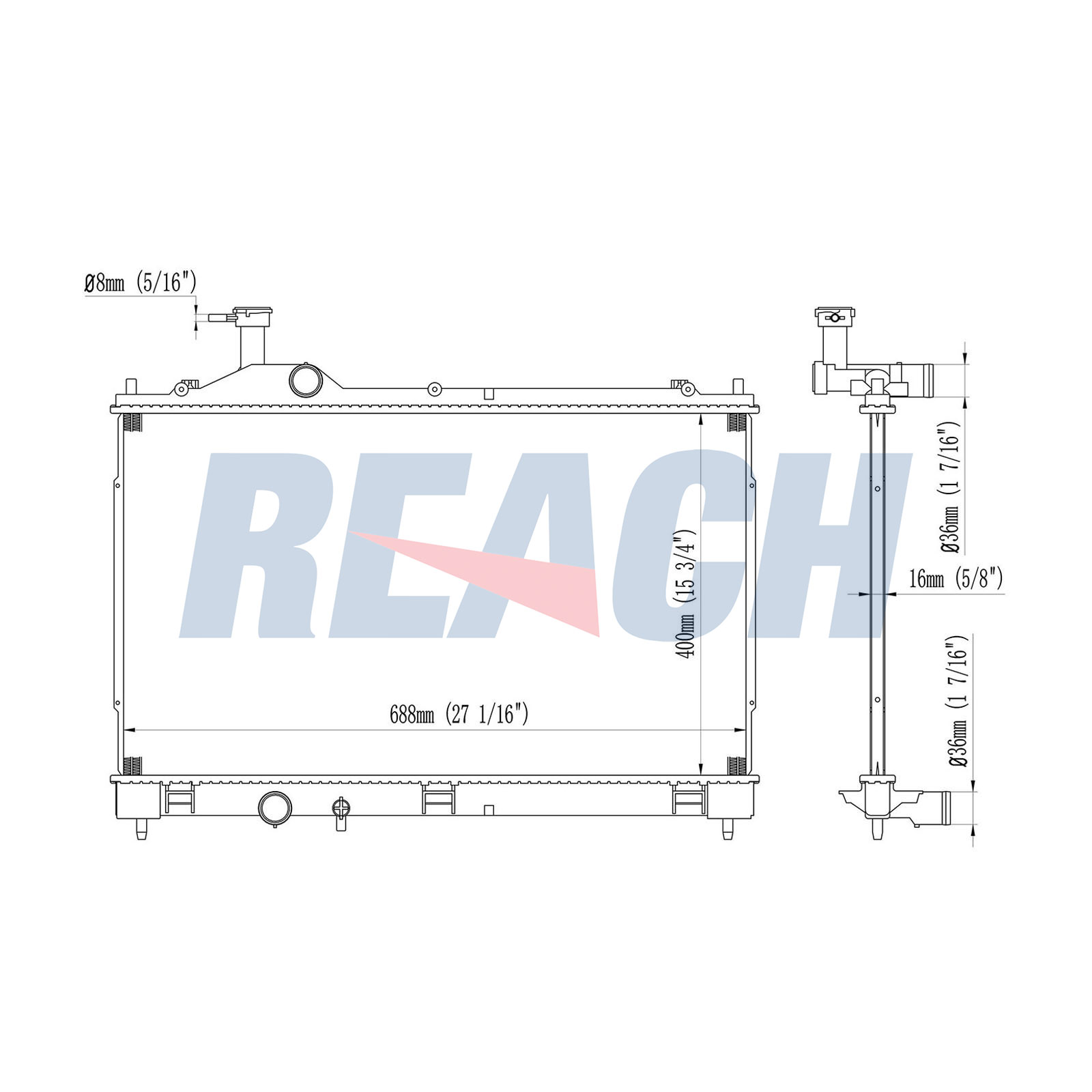 дълбочина на мрежа: 32mmдължина на мрежа: 400mmизпълнение на охладител: запоени охлацдащи ламелиматериал на ламелите на радиатора: алуминийматериал на резервоар (охладител): пластмасаширина на мрежа: 688mm
