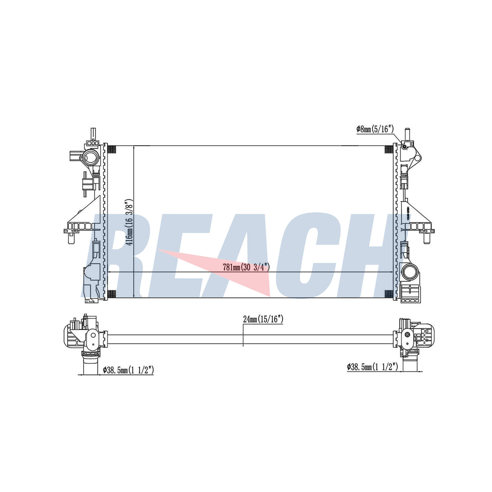 дълбочина на мрежа: 23mmдължина на мрежа: 780mmизпълнение на охладител: механично съединени охлаждащи ламелиматериал на ламелите на радиатора: алуминийматериал на резервоар (охладител): пластмасаширина на мрежа: 416mm