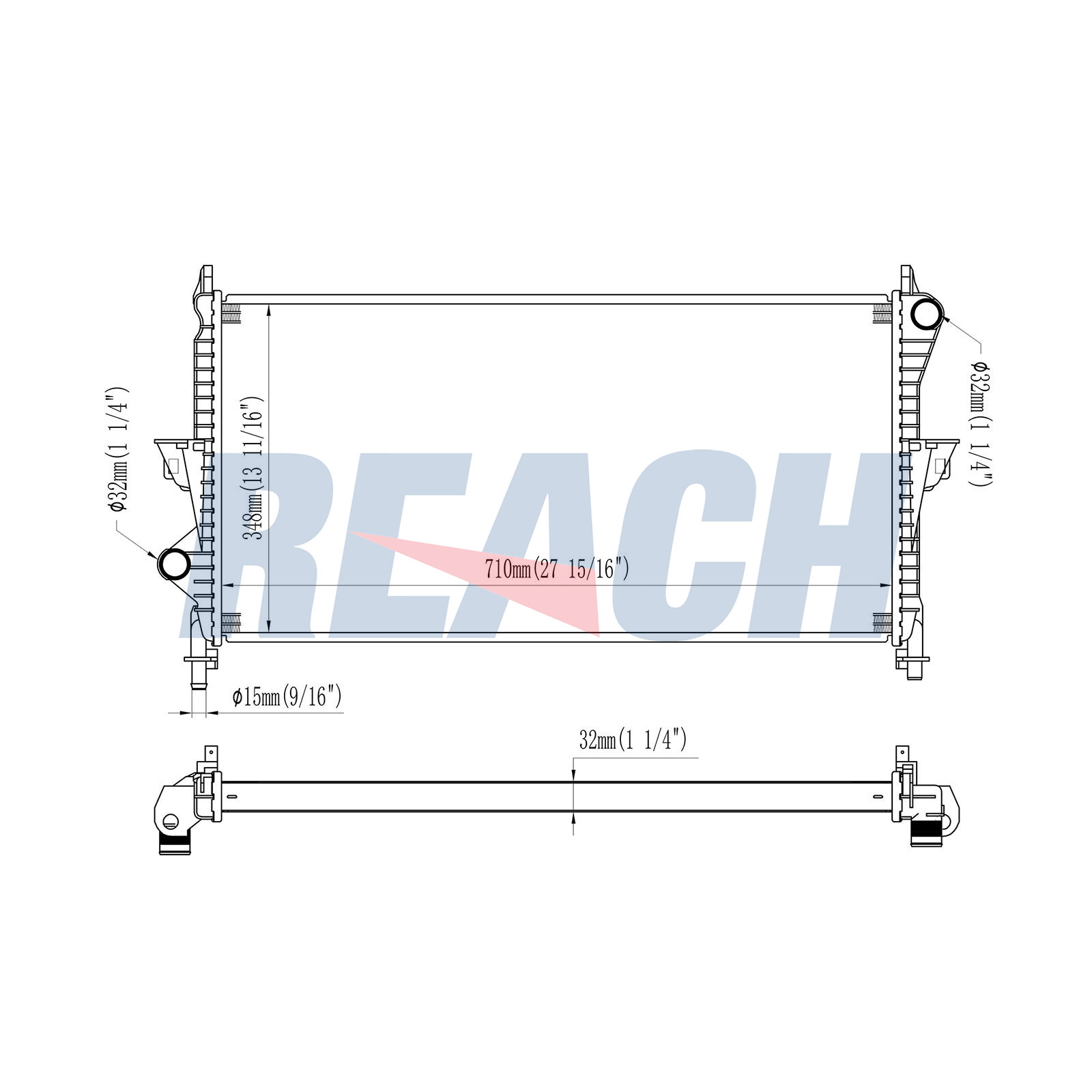 дълбочина на мрежа: 32mmдължина на мрежа: 710mmизпълнение на охладител: запоени охлацдащи ламелиматериал на ламелите на радиатора: алуминийматериал на резервоар (охладител): пластмасаширина на мрежа: 348mm