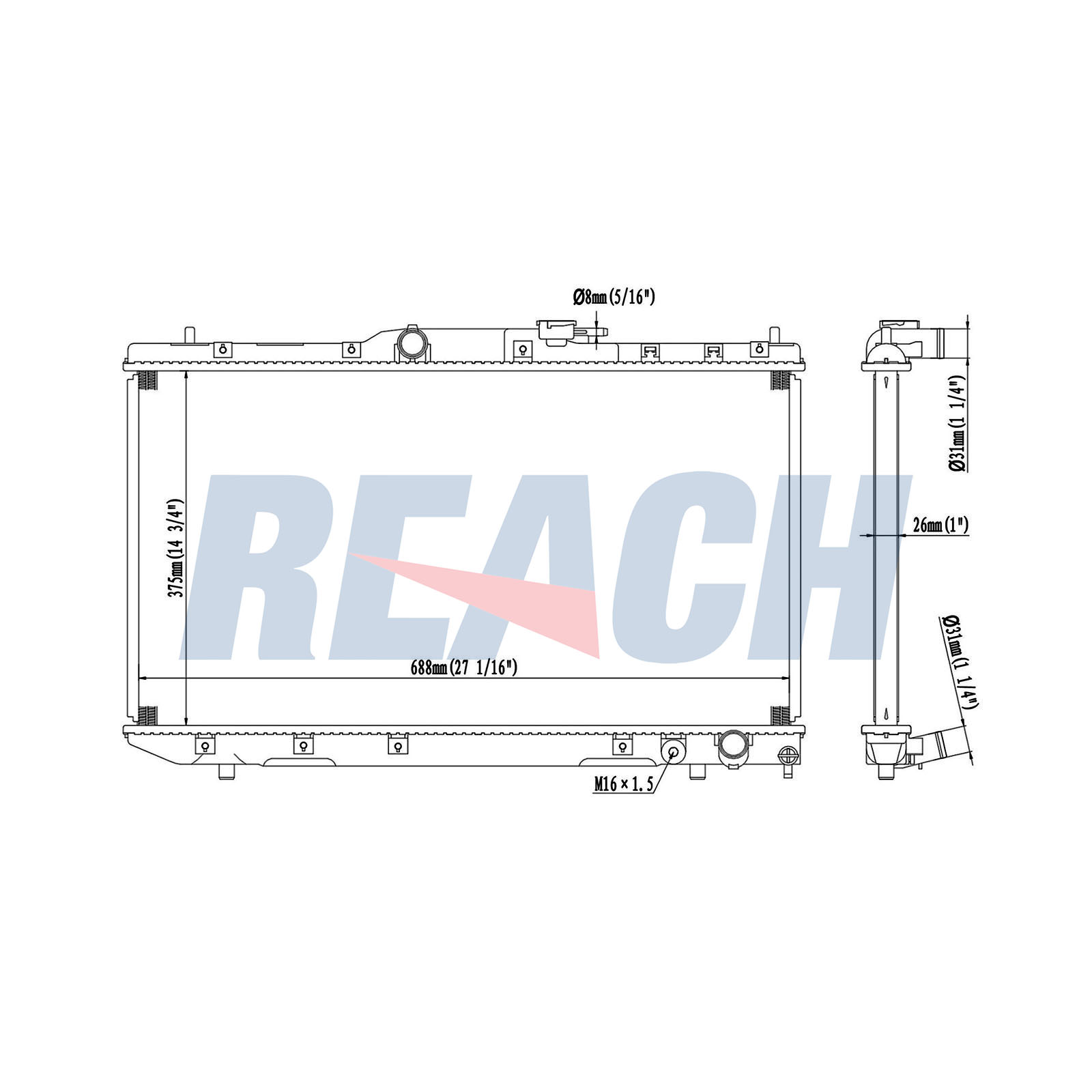 дълбочина на мрежа: 26mmдължина на мрежа: 375mmизпълнение на охладител: запоени охлацдащи ламелиматериал на ламелите на радиатора: алуминийматериал на резервоар (охладител): пластмасаширина на мрежа: 688mm