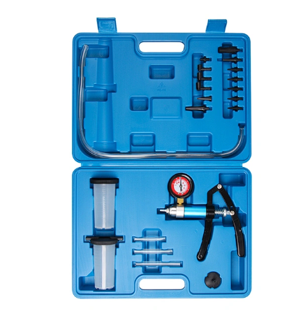 КАЧЕСТВО: Алуминиева конструкция ПОВЕЧЕ АКСЕСОАРИ, ПОВЕЧЕ ФУНКЦИИ: 30 адаптера в подложка за съхранение Пълнене на горивни вериги Почистване на малки хидравлични вериги Проверка на сензори за налягане Проверка на превключватели Измерване на налягане ДВОЙНО БУТАЛО: Дава повече сила при налягане и изпомпване Натискане/вакуум превключващ клапан Позволява контрол на: - Натискане капка със строб лампа - Херметичност на горивните вериги - Херметичност на веригата за усилване на спирачките и всички други вакуумни системи - Контролни диафрагми намаляване на налягането зад връзката на турбокомпресора / байпасен клапан Технически параметри: Налягане: 0 до 1,5 бара Маркуч 800 мм