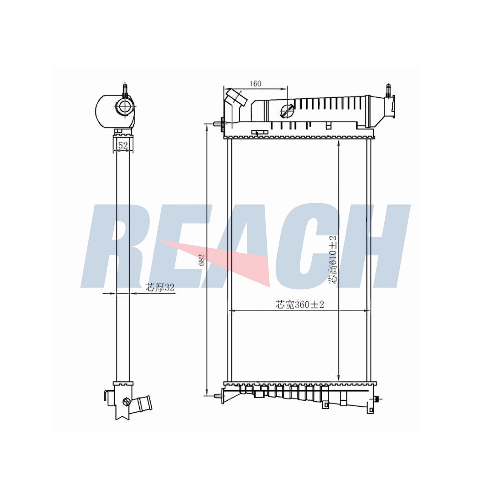 дълбочина на мрежа: 32mmдължина на мрежа: 610mmизпълнение на охладител: механично съединени охлаждащи ламелиматериал на ламелите на радиатора: алуминийматериал на резервоар (охладител): пластмасаширина на мрежа: 360mm
