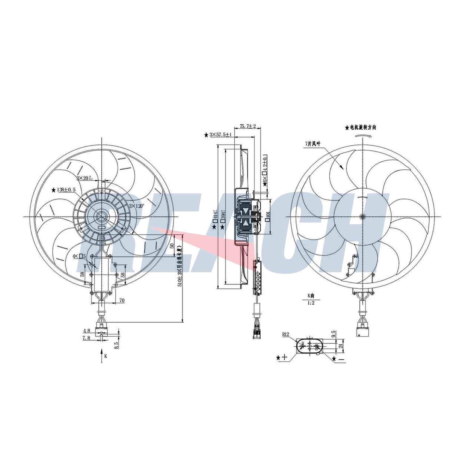 брой на лопатките на перката: 7брой пинове: 4Ø: 420mmдоп. артикул/доп. инфо. 2: без рамка на вентилатора на радиатораноминална мощност: 450Wотопление/ охлаждане: единичен вентилаторстрана на монтаж: дясноформа на корпуса на щекера: овален