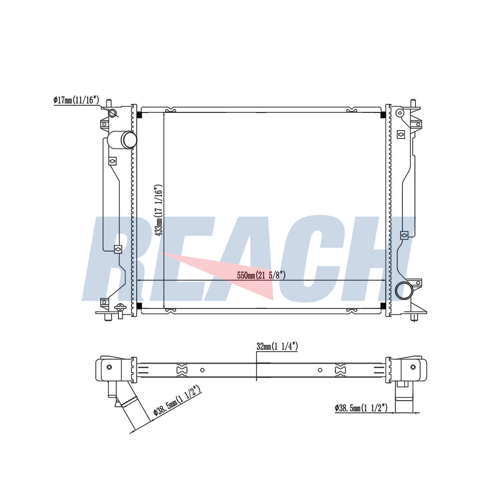 дълбочина на мрежа: 32mmдължина на мрежа: 550mmизпълнение на охладител: запоени охлацдащи ламелиматериал на ламелите на радиатора: алуминийматериал на резервоар (охладител): пластмасаширина на мрежа: 434mm