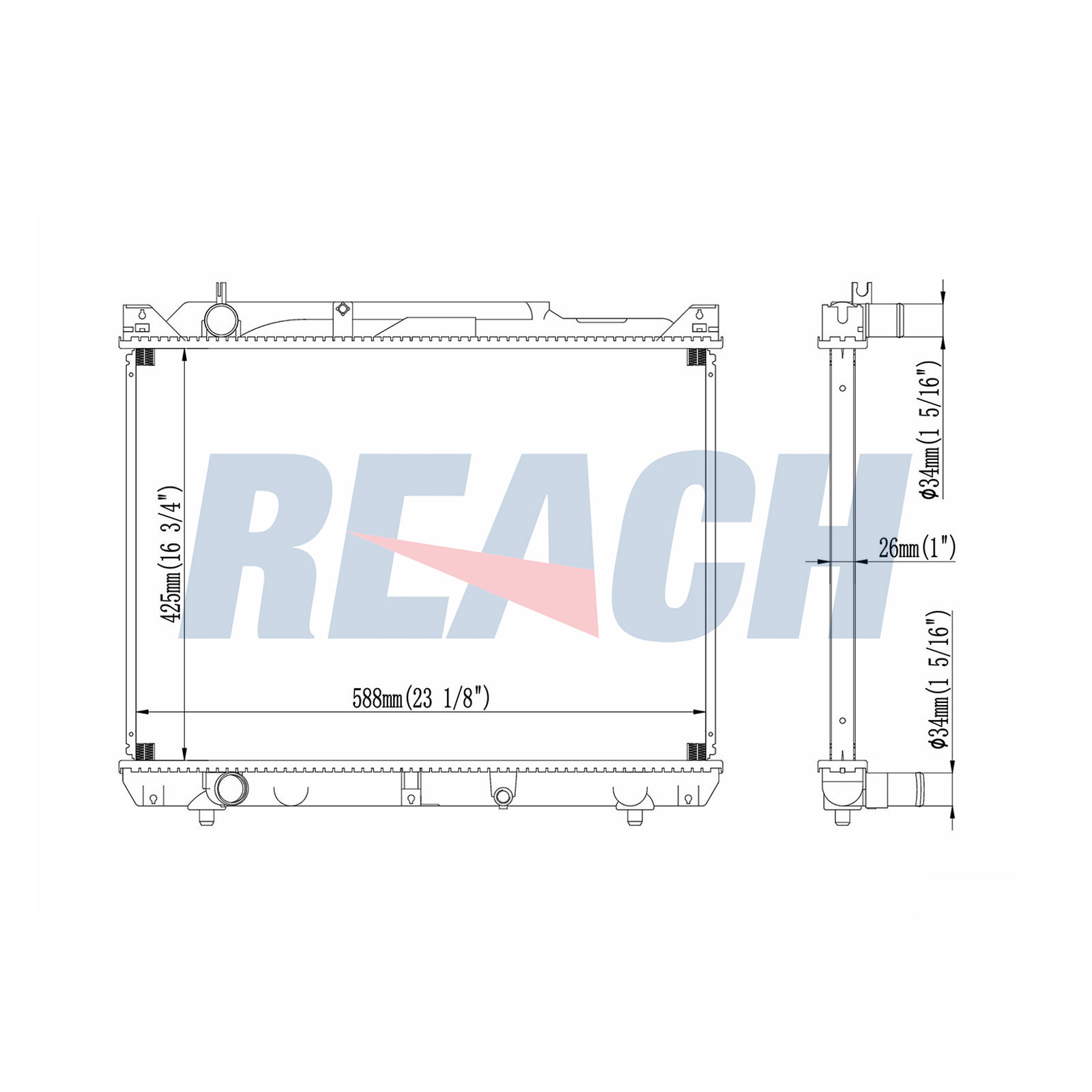 Входящ отвор Ø: 34mmдоп. артикул/доп. инфо. 2: без разширителен съддълбочина на мрежа: 26mmдължина на мрежа: 425mmизпълнение на охладител: запоени охлацдащи ламелиИзходящ отвор Ø: 34mmматериал на ламелите на радиатора: алуминийматериал на резервоар (охладител): пластмасаширина на мрежа: 588mm